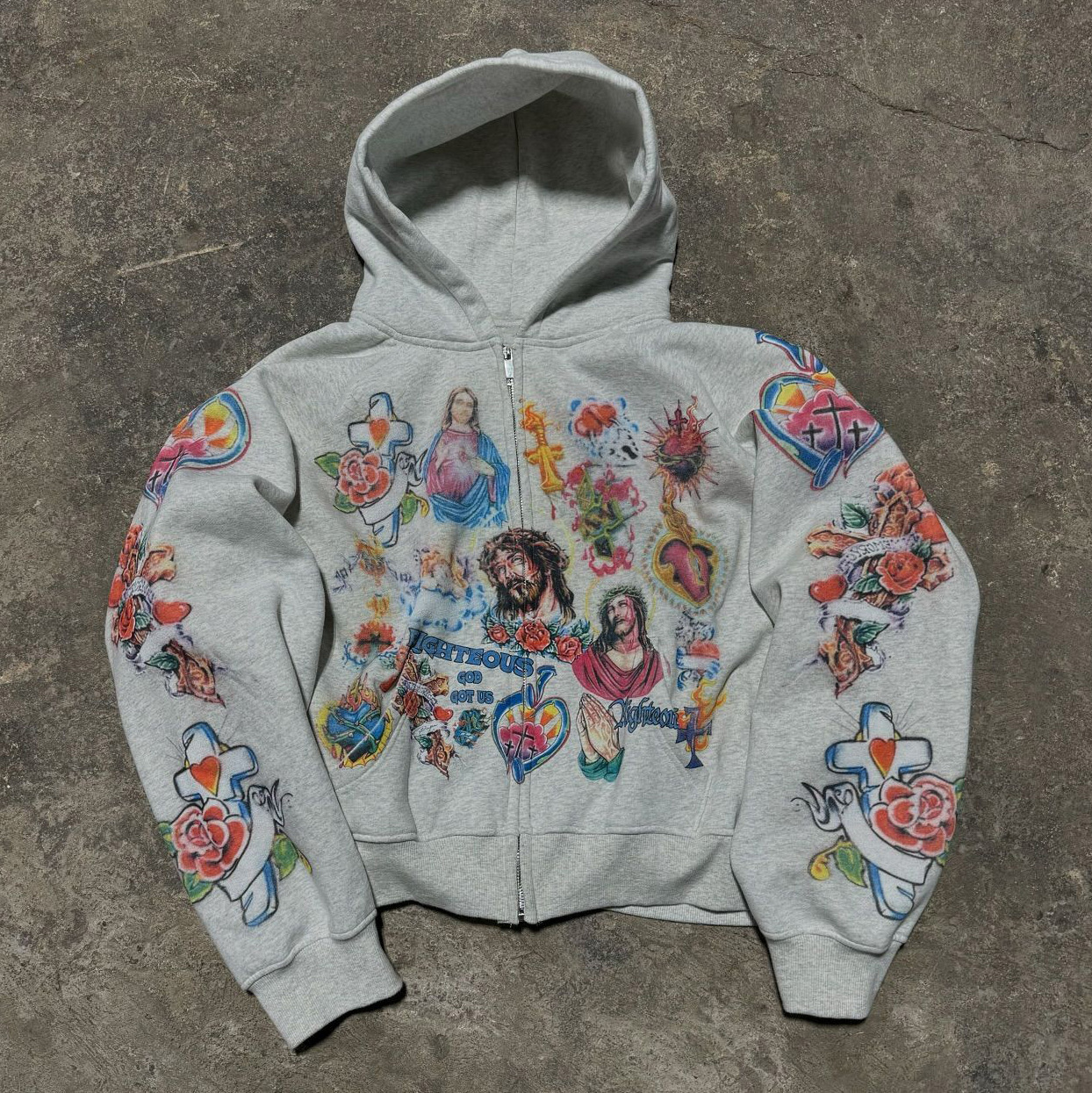 Jesus Print Long Sleeve Zipper Hoodies
