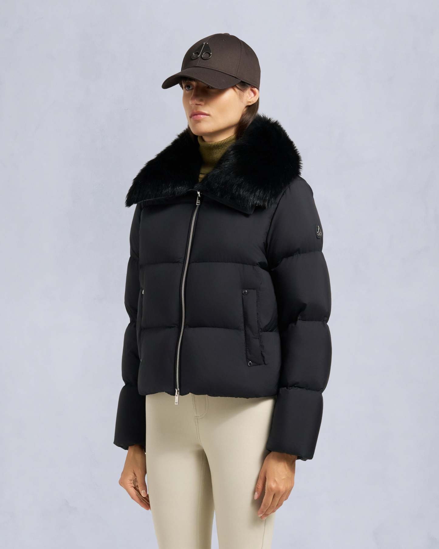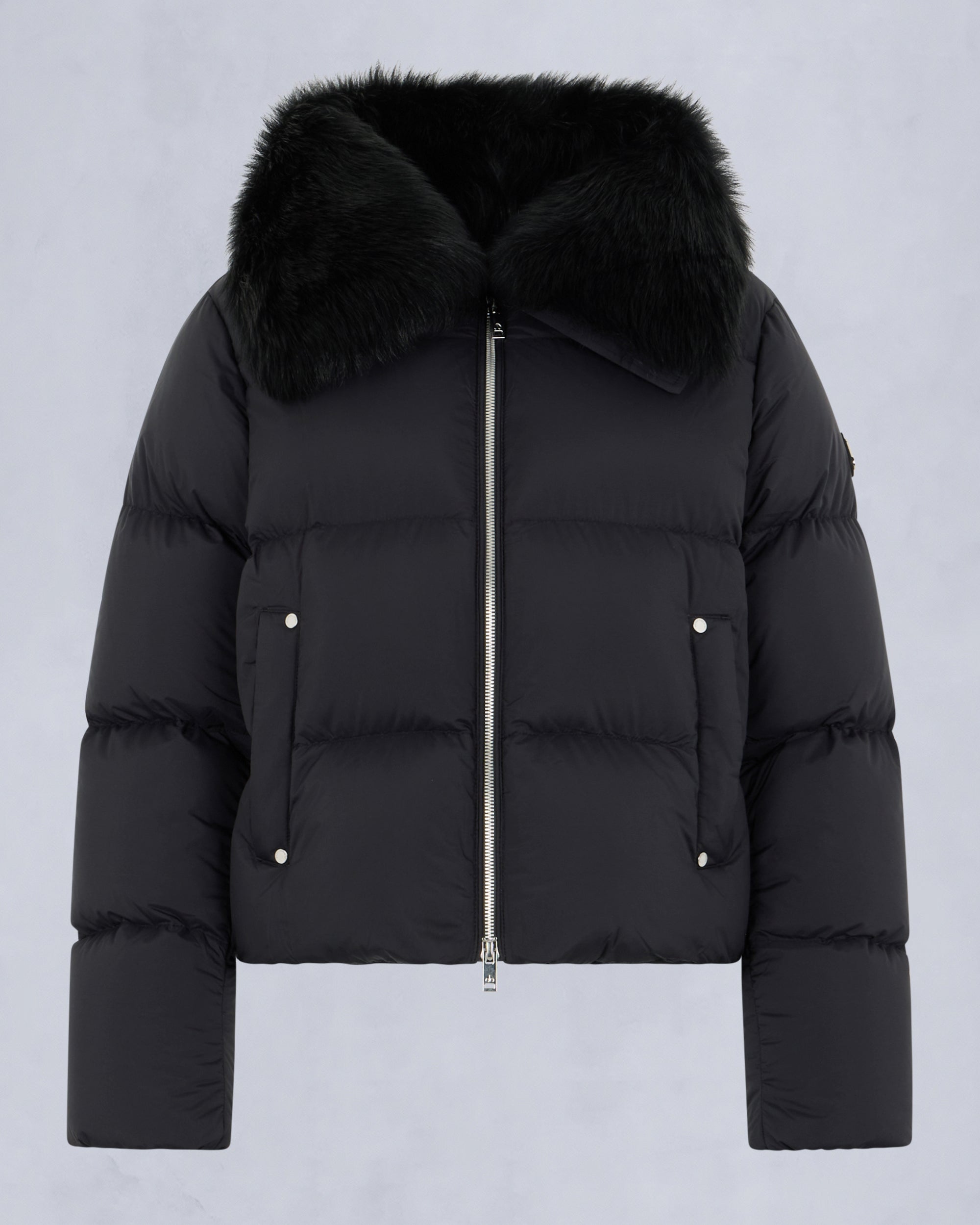 BELLE DUNE SHORT SHEARLING TRIM PUFFER-BLACK/BLACK