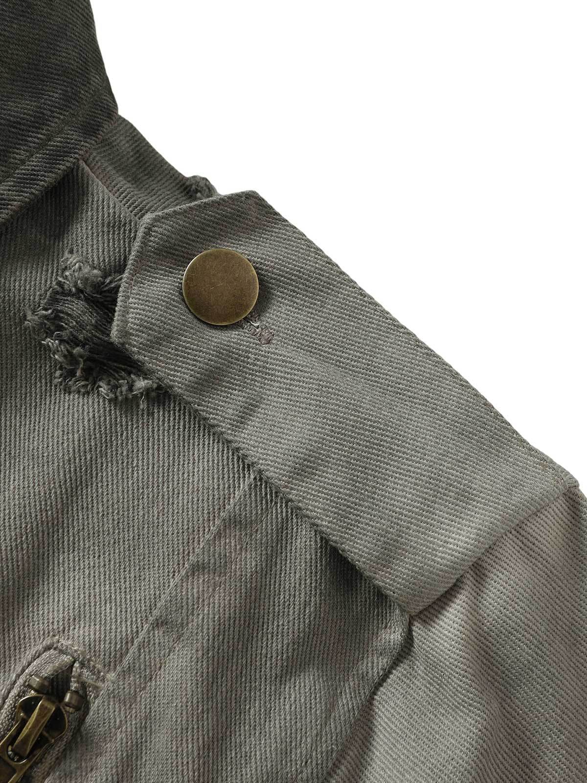 Distressed Irregular Zip Up Denim Jacket