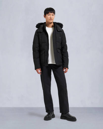 ONYX ROUND ISLAND SHEARLING TRIM JACKET