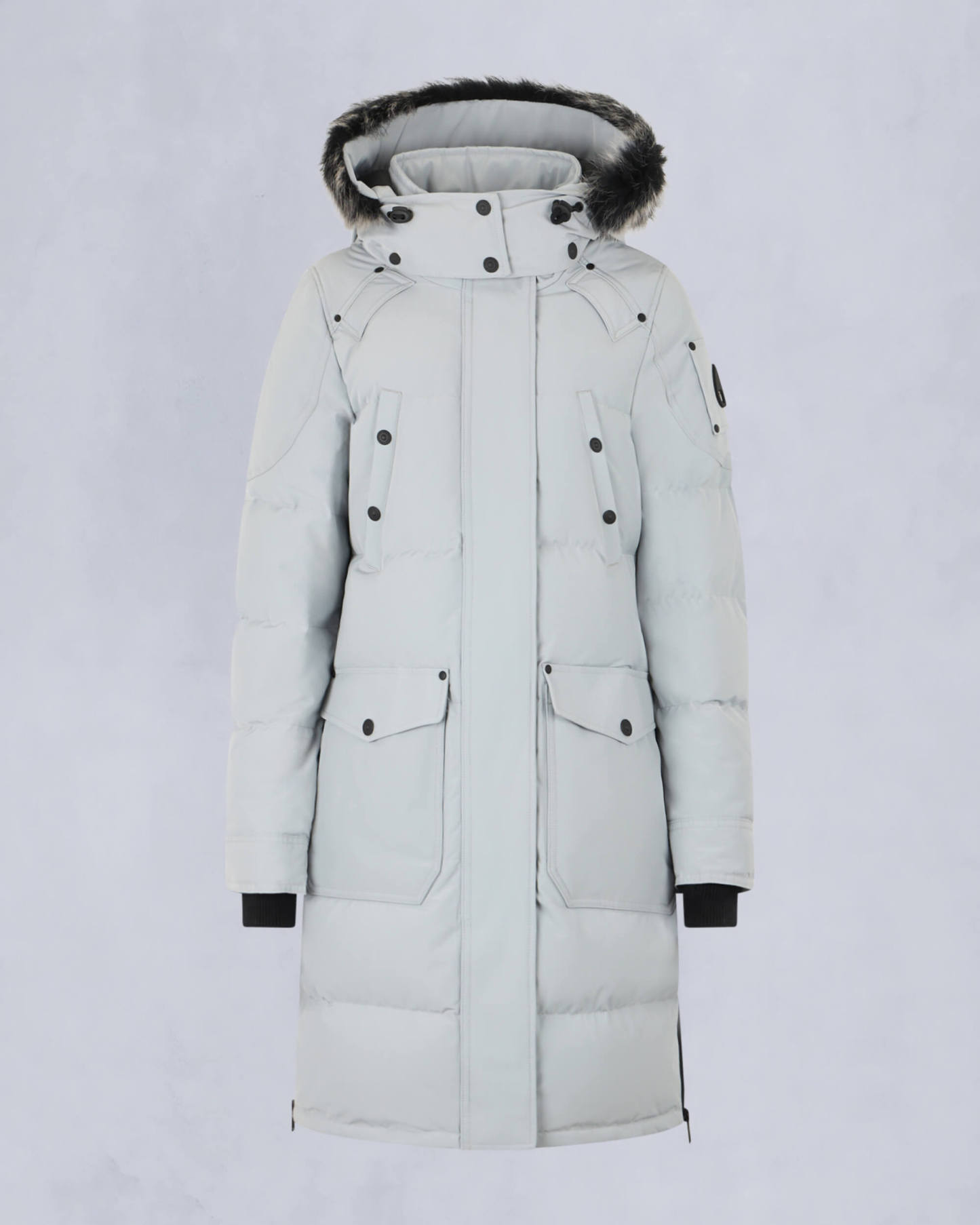 The Onyx Causapscal Parka is one of our most city-forward parka designs, known for its impeccable craftsmanship down to the last detail. Engineered to provide our highest protection rating, it's made from DWR-treated Nyluxe fabric known for its silky finish and filled with RDS-certified 90/10 down fill that boasts 750 fill power capable of weathering the worst winter storms. It features heat-retaining hand pockets and a fully detachable shearling-trimmed hood for added protection against the elements.