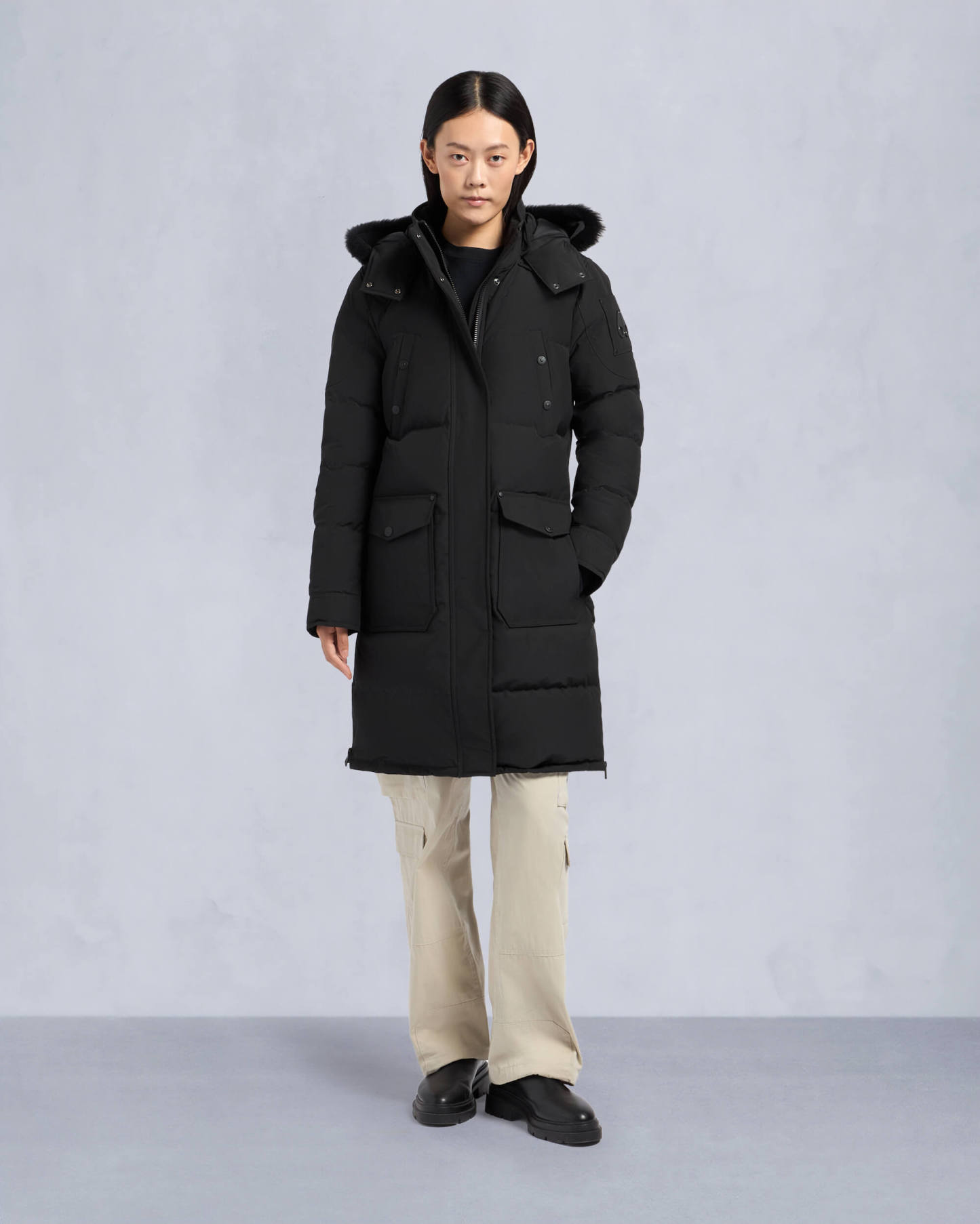 ONYX SHEARLING TRIM CAUSAPSCAL PARKA-BLACK/BLACK
