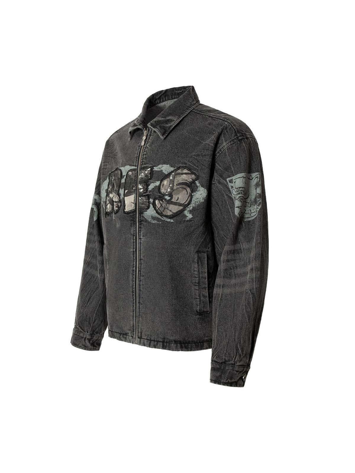 Wasteland Embroidered Print Rivet Denim Jacket