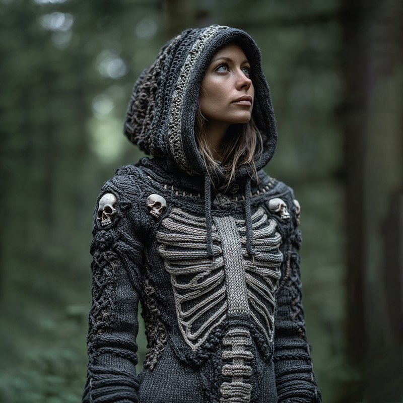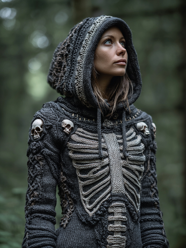 Women's Vintage Viking Skull Cozy Knit Hooded Sweater
